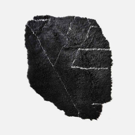 Materiality plays a central role throughout the collection. Deep black surfaces, tonal neutrals, and mineral-like textures interact with variations in pile density, allowing light to move subtly across the surface. From a distance the works appear restrained and graphic; at closer range the tactile complexity and craftsmanship become more apparent.