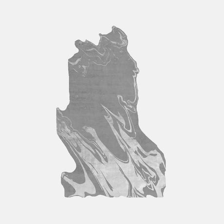 Several works adopt irregular silhouettes, moving away from conventional rug formats and instead taking on contours that resemble eroded fragments or mineral slabs. These forms introduce a sculptural presence within the interior, allowing the pieces to occupy space with a quiet physical weight rather than a purely graphic expression. The contours also connect to Henzel’s long-standing exploration of free-form rug compositions developed through his Frozen Cut methodology, where environmental forces such as erosion, thawing snow, and seasonal shifts informed the development of irregular textile boundaries.
