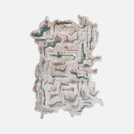 Color emerges from the same source. The palette reflects the pale tones of sunlit sand, the translucent waters that appear between the dunes, and the deeper shadows that travel across the landscape as the sun moves overhead. Rather than fixed blocks of color, tones move gradually across the surface, allowing the piece to shift in character depending on light and perspective.