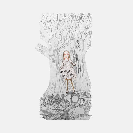 Lost in Woods (2022) translates this narrative sensibility into textile form. The composition reflects Ruttenberg’s distinctive visual universe, where organic shapes, layered forms, and shifting silhouettes evoke the experience of moving through a forested landscape. Rather than presenting a literal scene, the design suggests a space where figures, vegetation, and atmosphere dissolve into one another, allowing the viewer to navigate the image through texture, color, and movement.